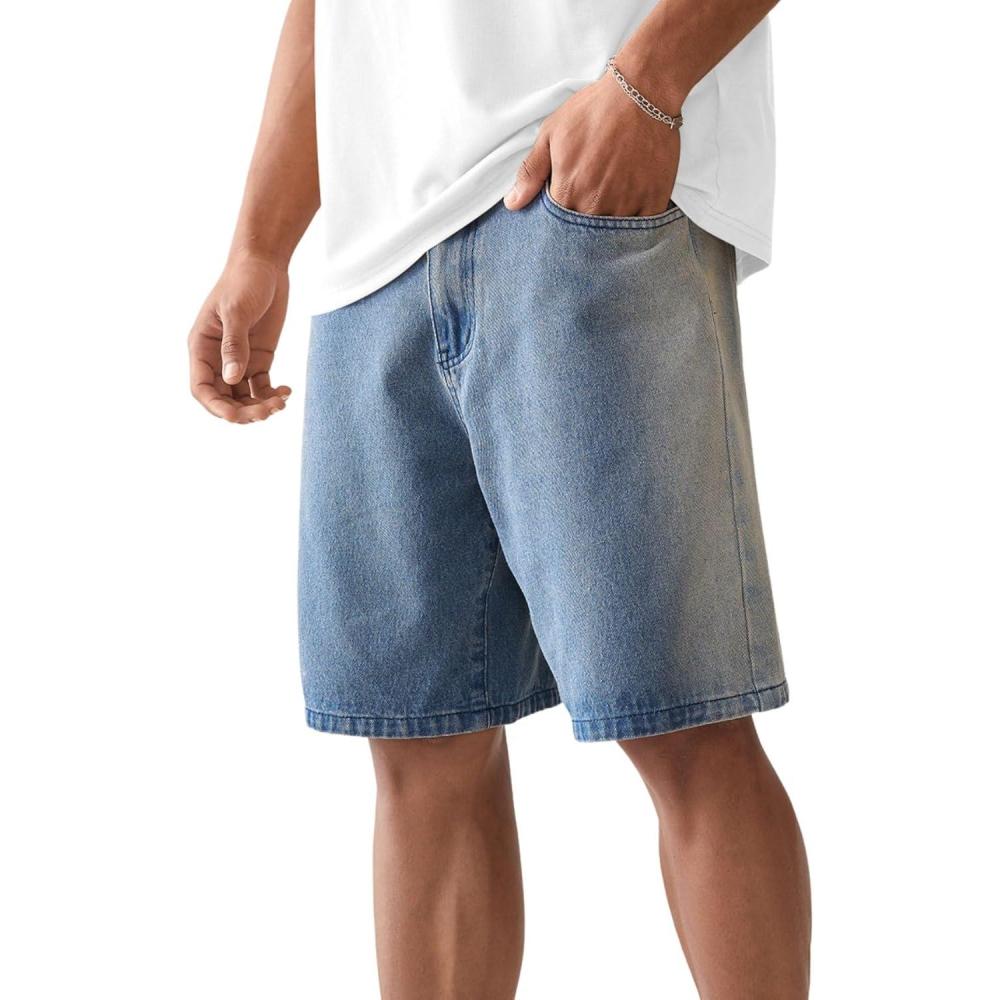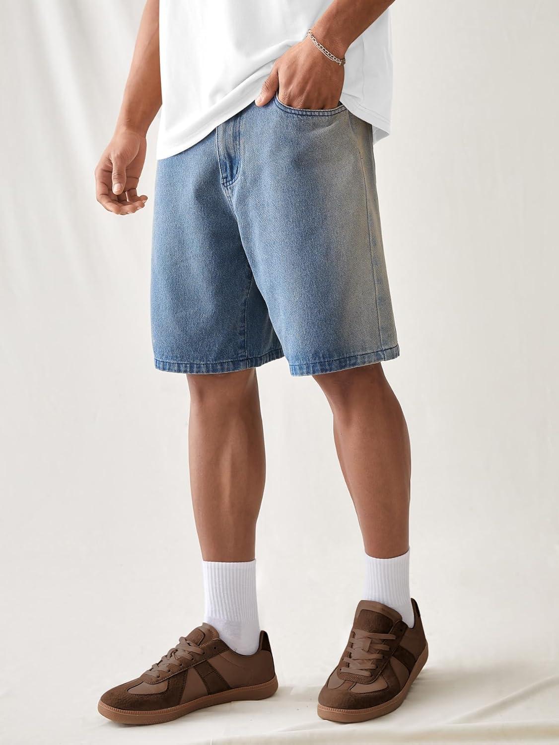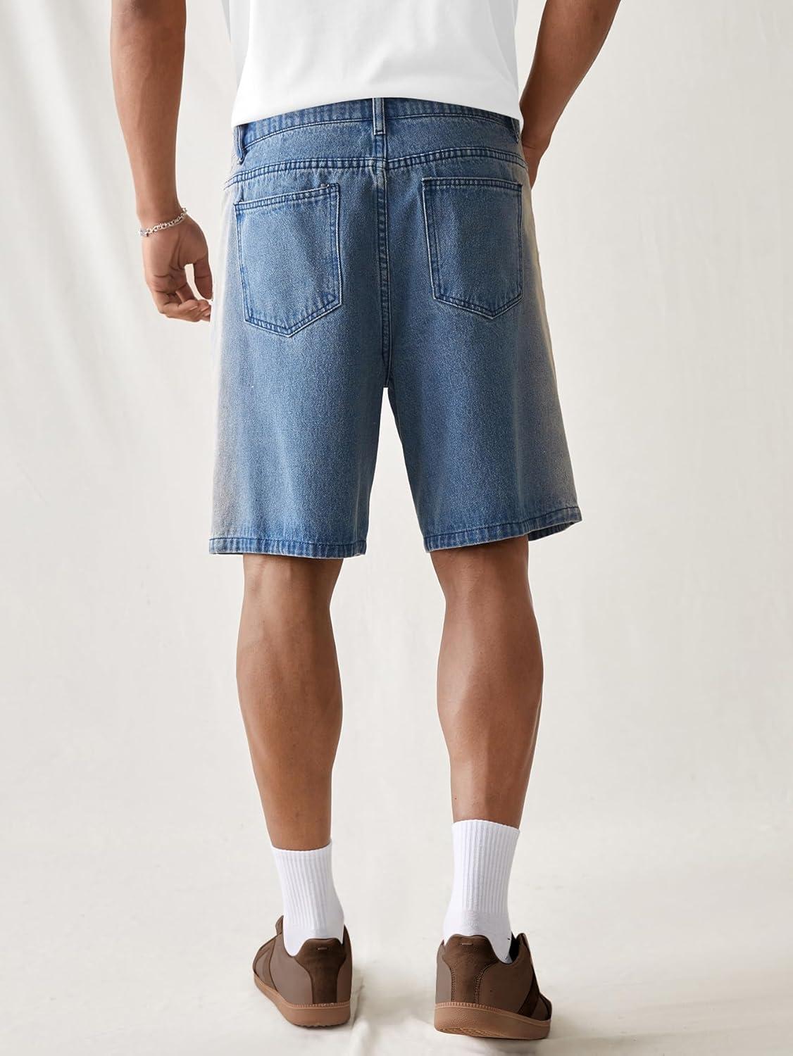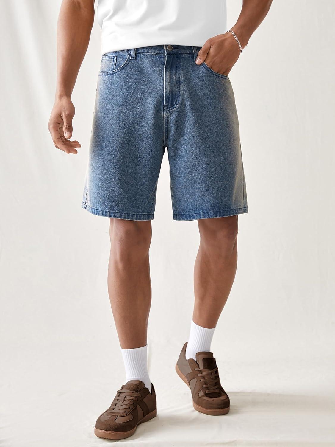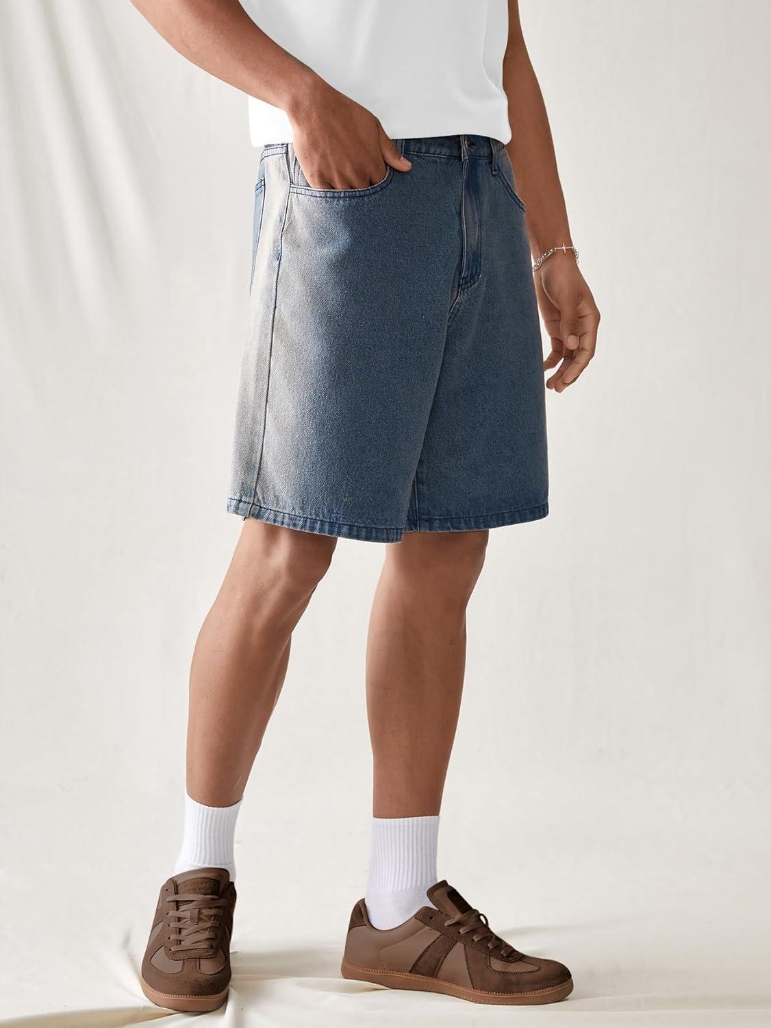 Verdusa Men’s Straight Leg Denim Shorts Casual Jean Shorts with Pockets(Dark Wash)