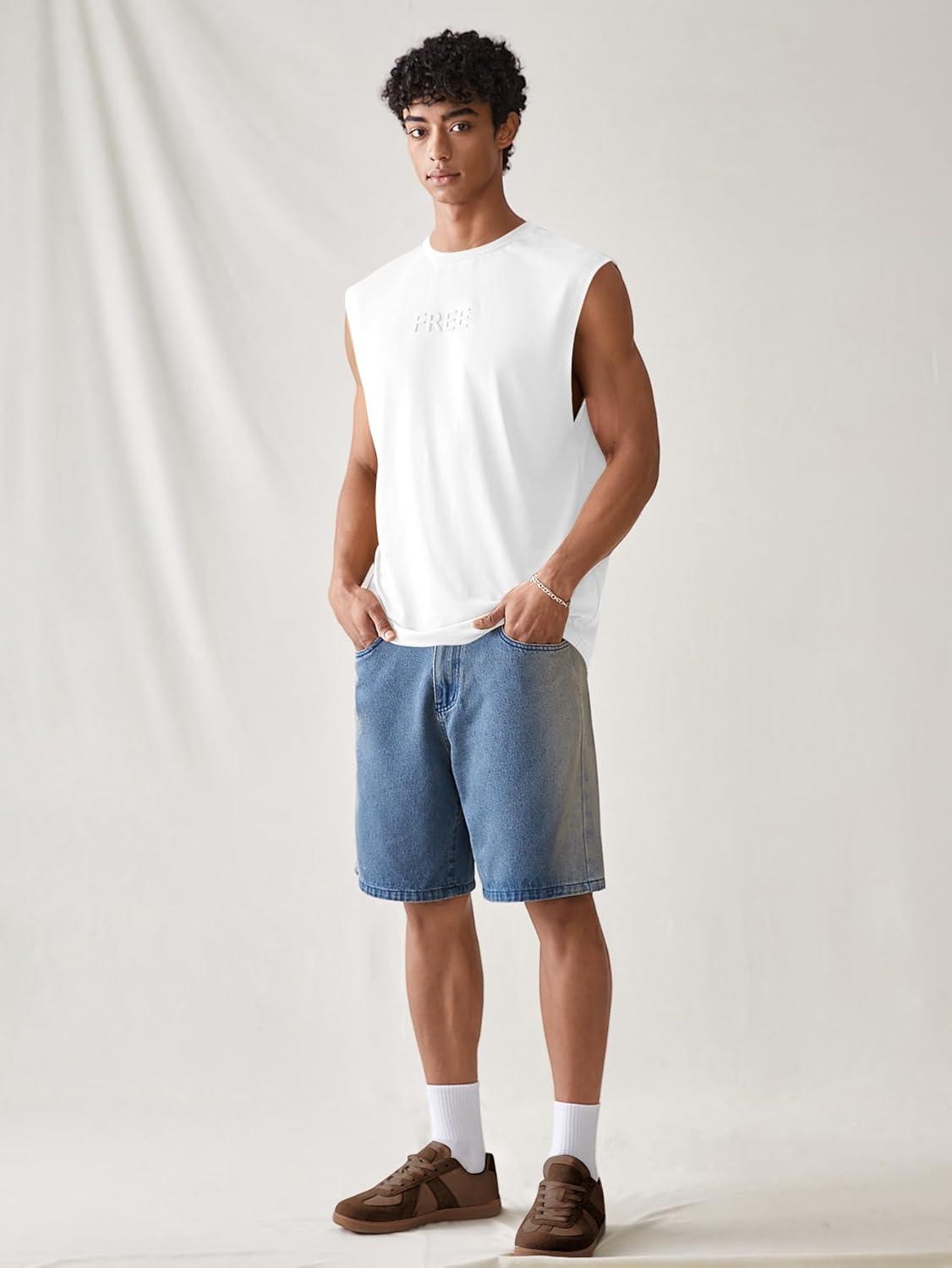 Verdusa Men’s Straight Leg Denim Shorts Casual Jean Shorts with Pockets(Grey)