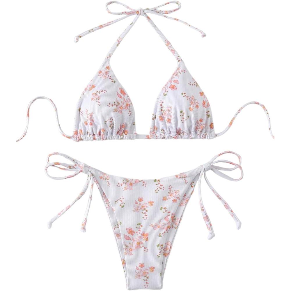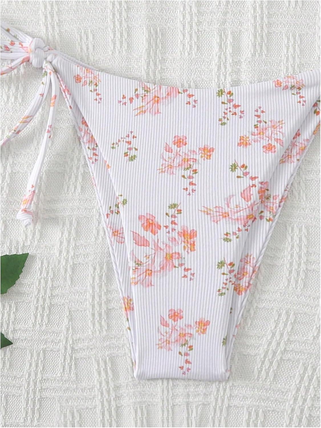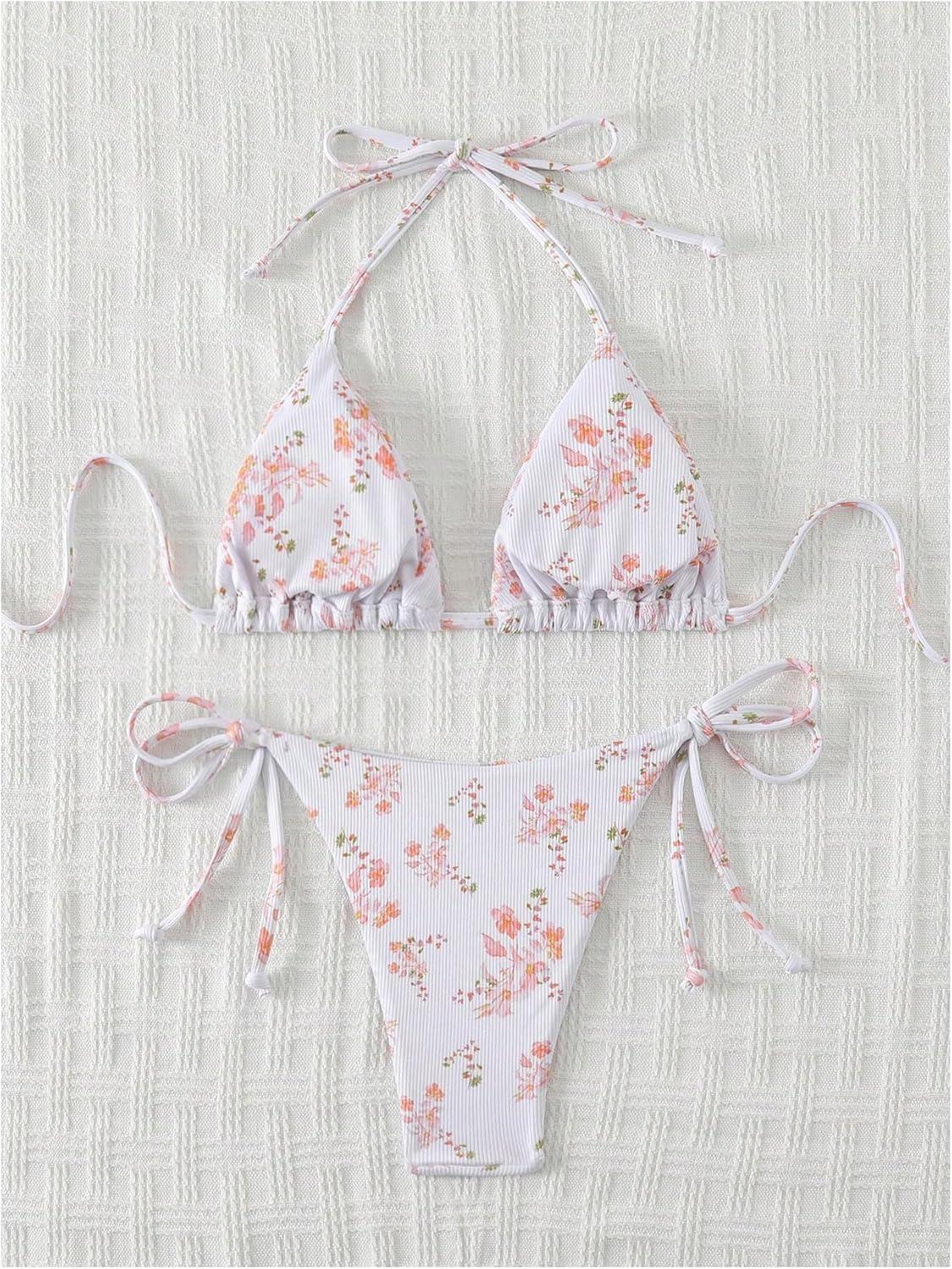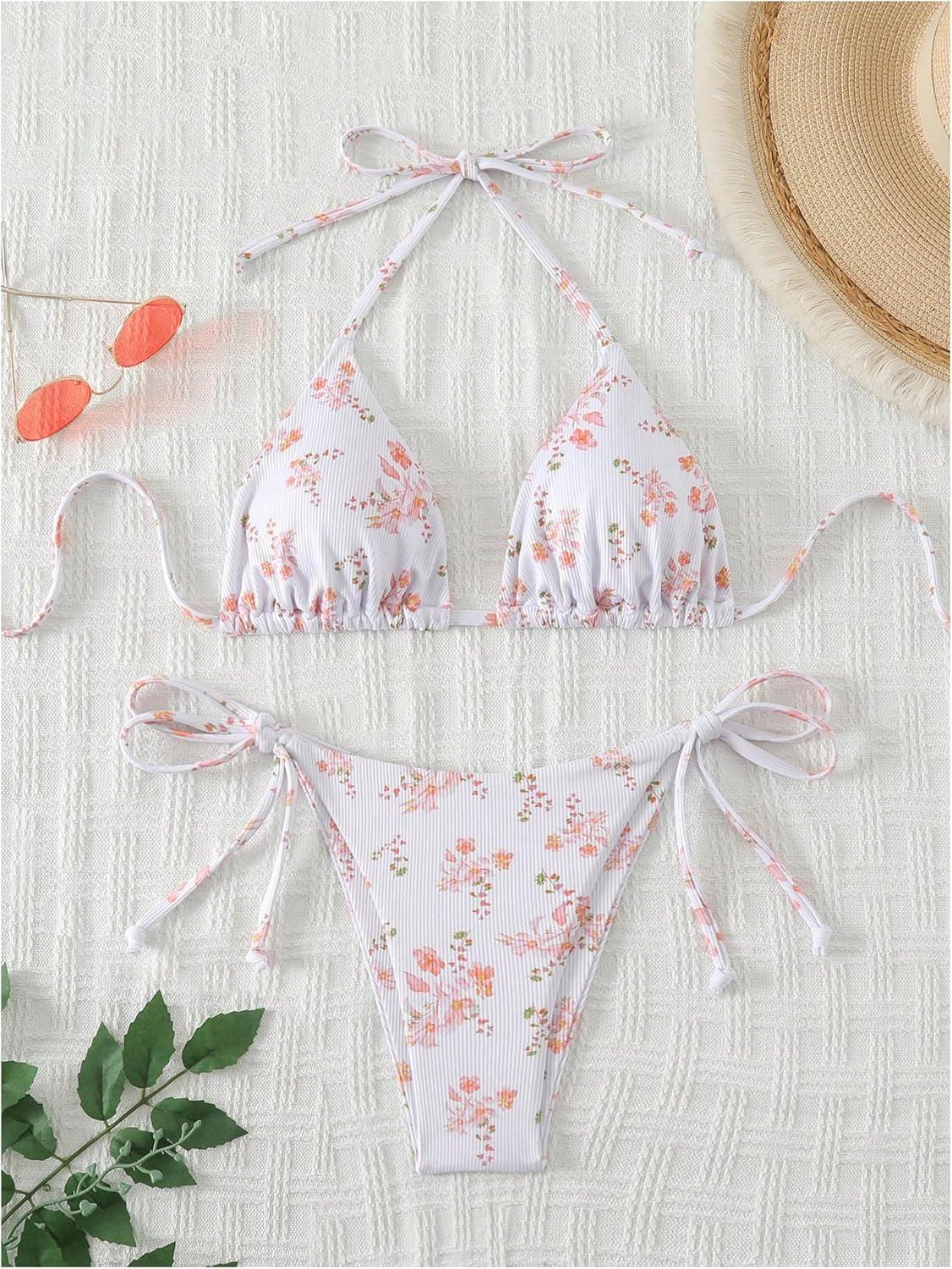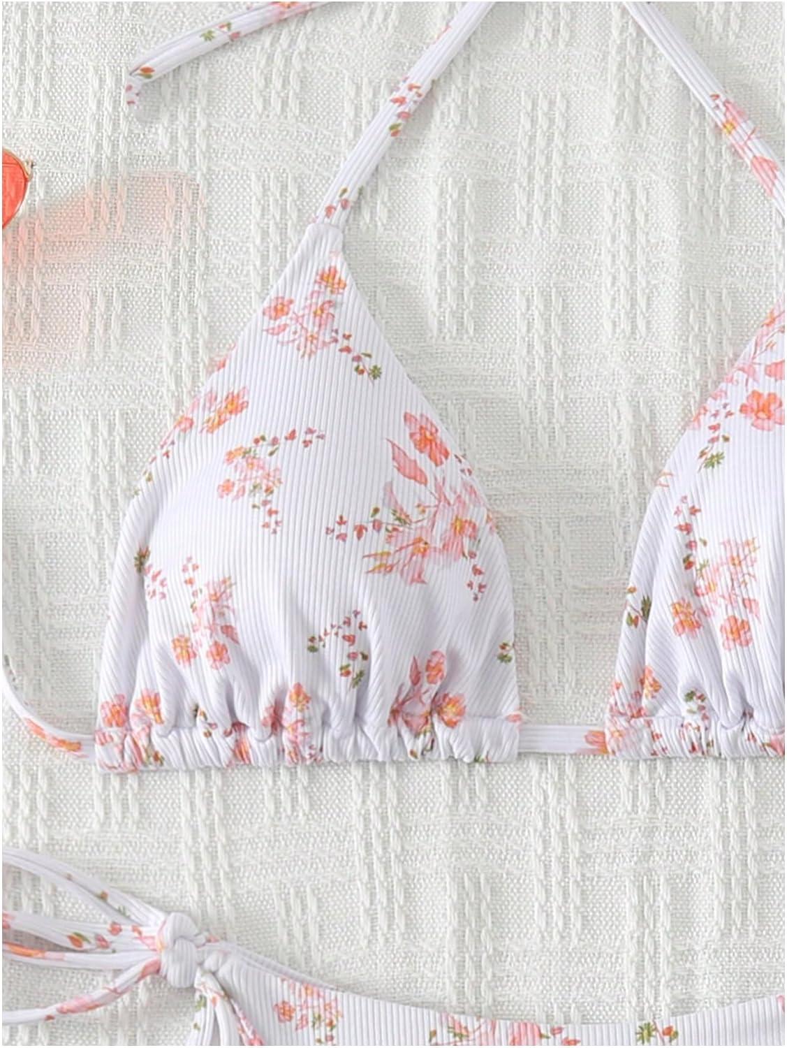 Verdusa Women’s 2 Piece Boho Floral Halter String Bikini Sets Sexy Bathing Suits(Light Pink)