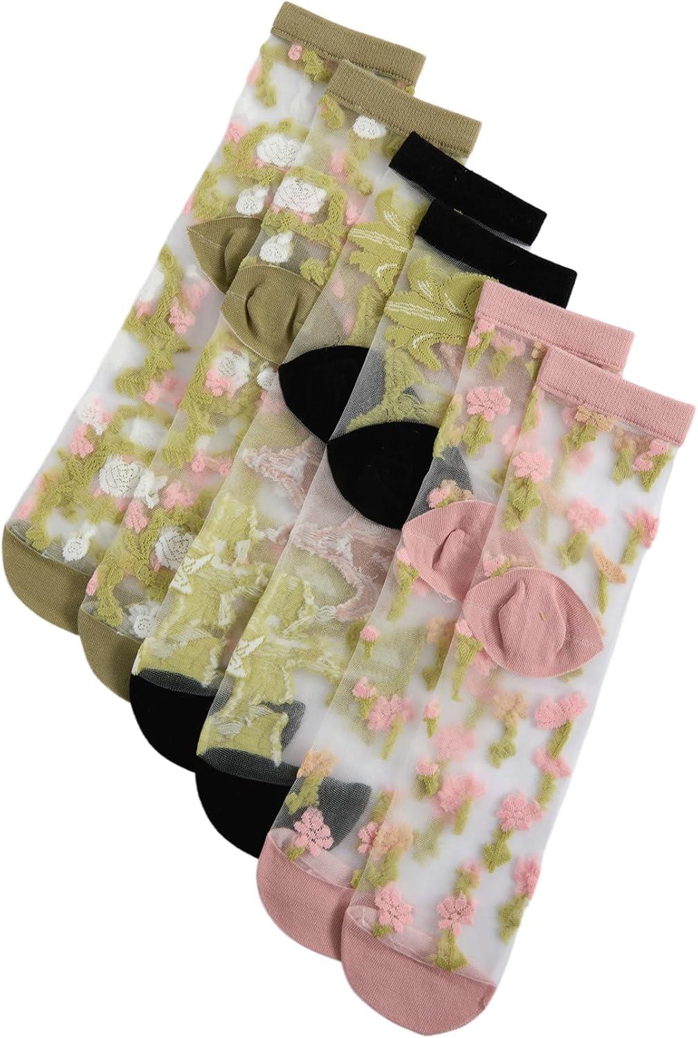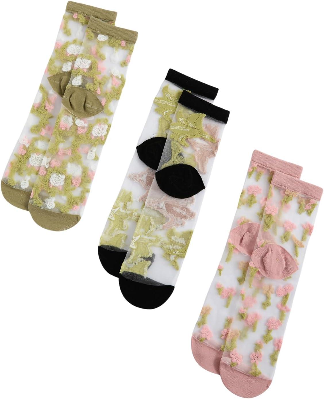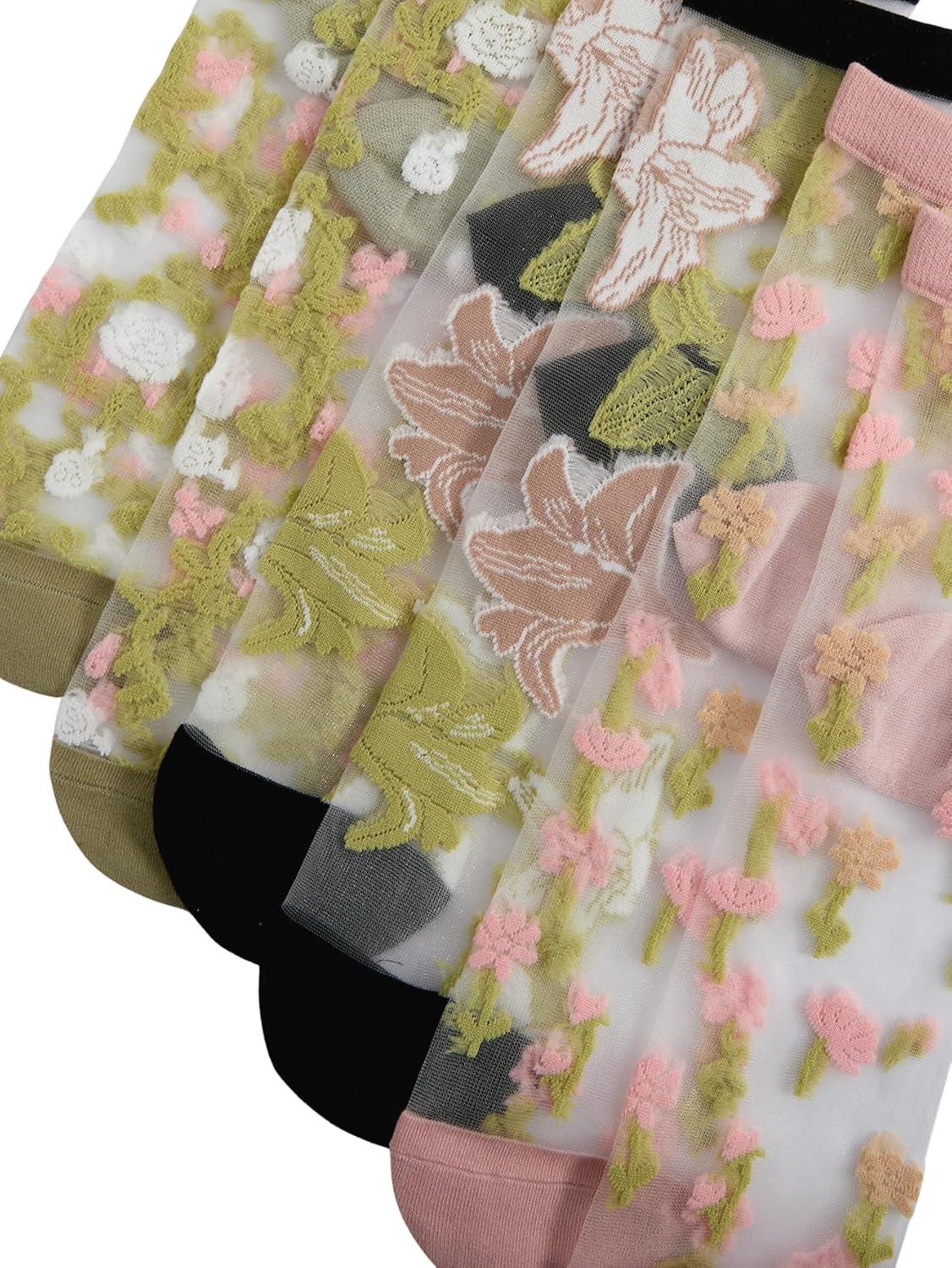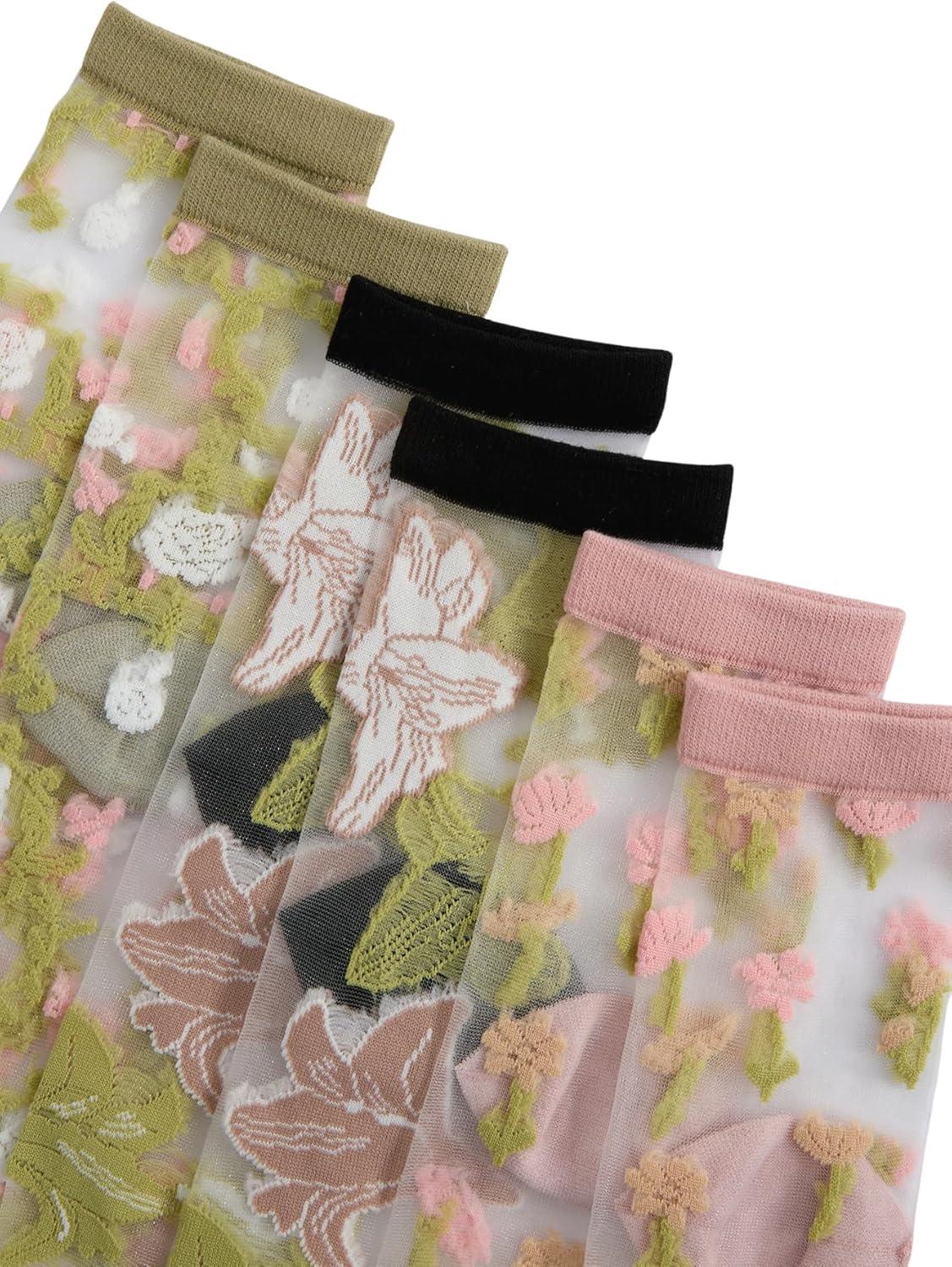 Verdusa Women's 3 Pairs Sheer Mesh Socks Floral Thin Socks(Multicolor)