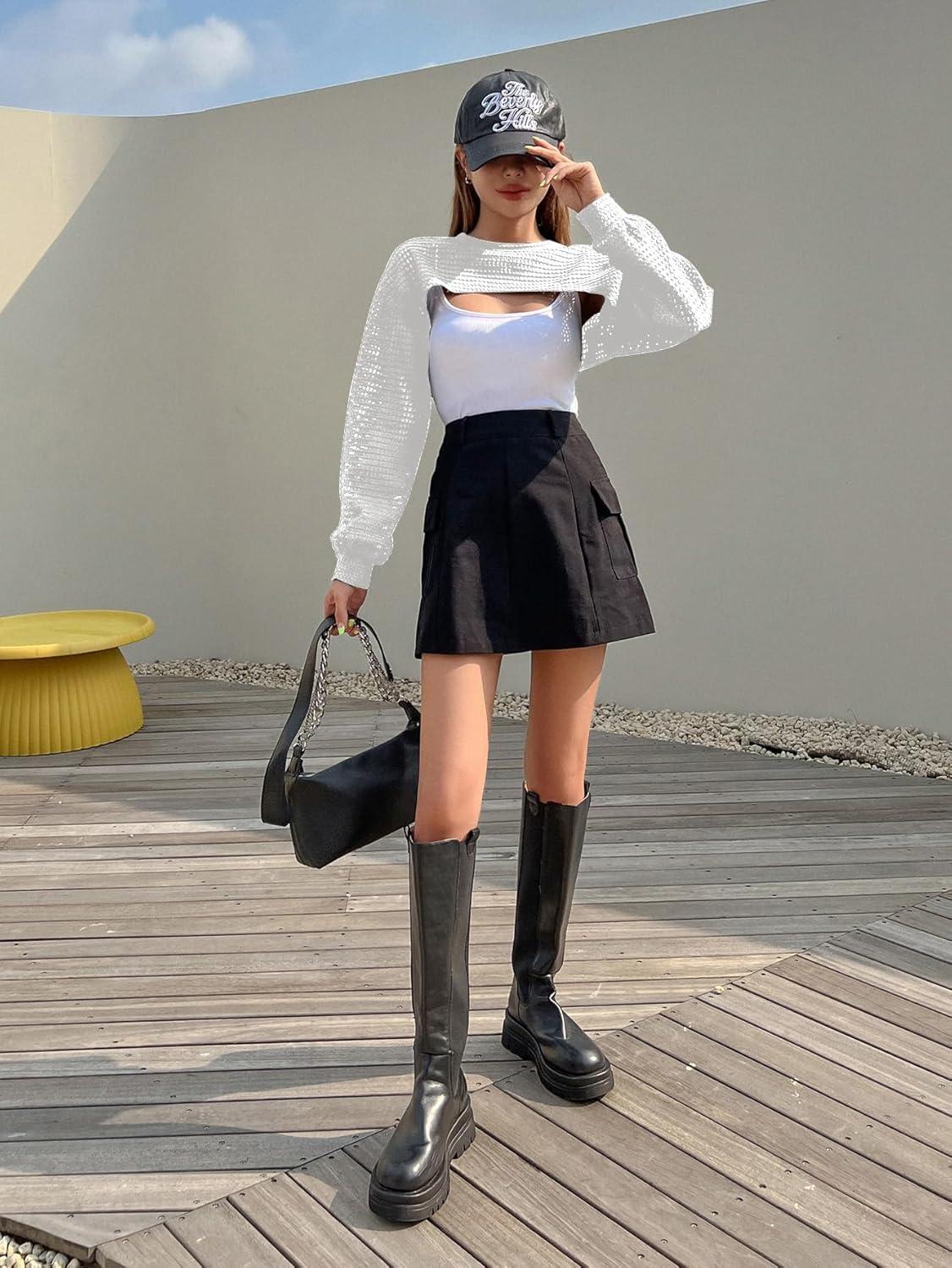 Be the first to review “Verdusa Women’s Crop Cover Up Long Sleeve Pointelle Knit Hollow Out Crochet See Through Knit Top(White)”