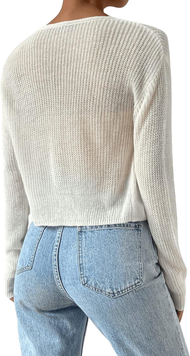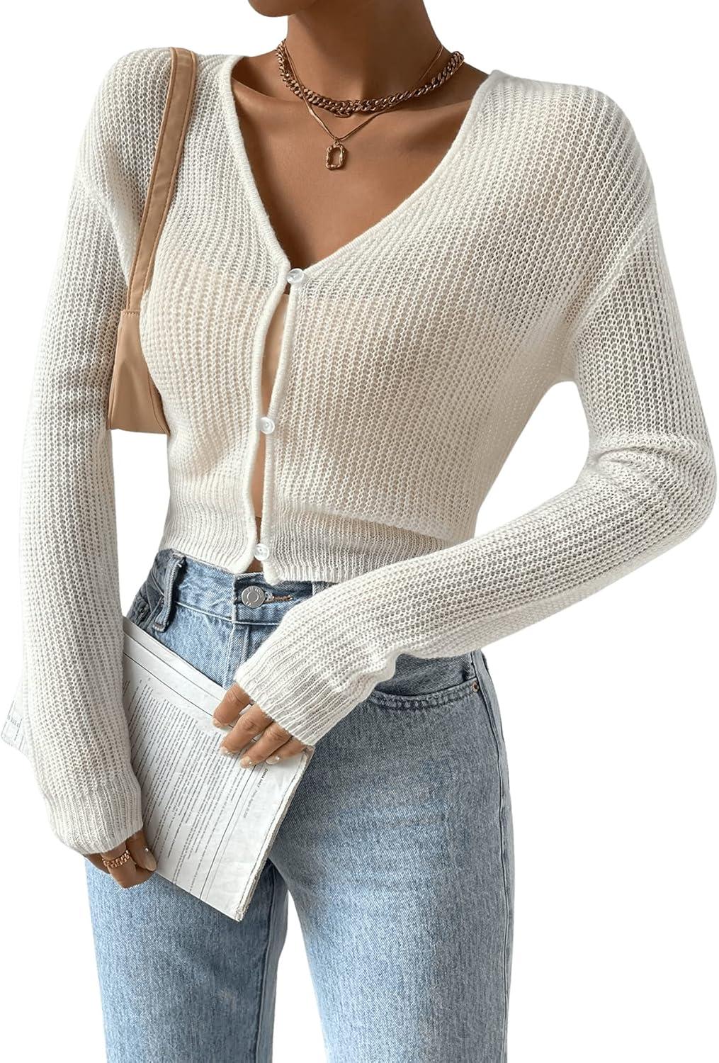 Verdusa Women’s Drop Shoulder Long Sleeve Button Up Knit Cardigan Sweater(Cream White)