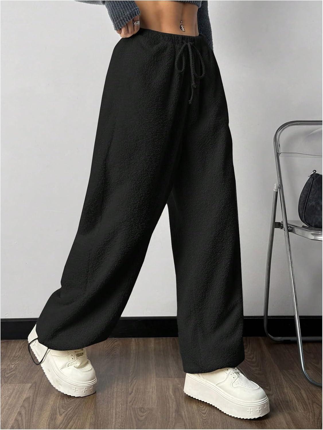 Verdusa Women's High Waist Fuzzy Fleece Lounge Long Pants Pajama Pants(Solid Black)
