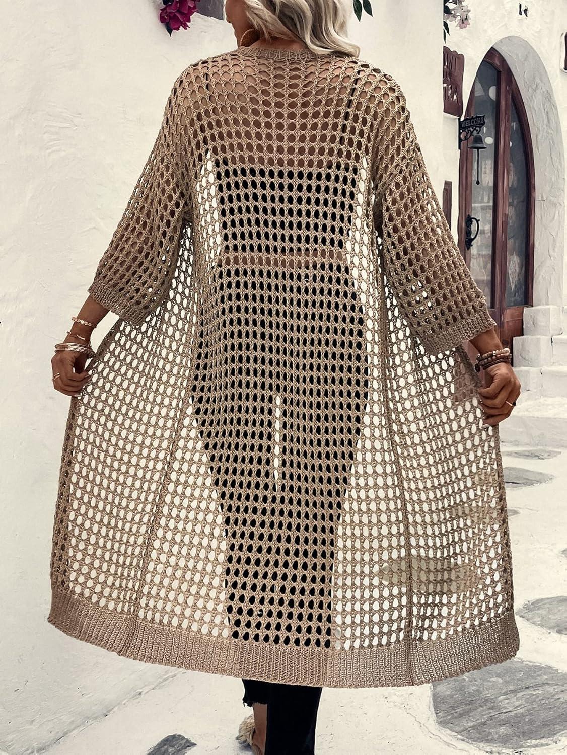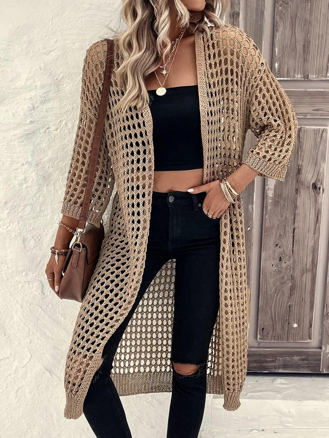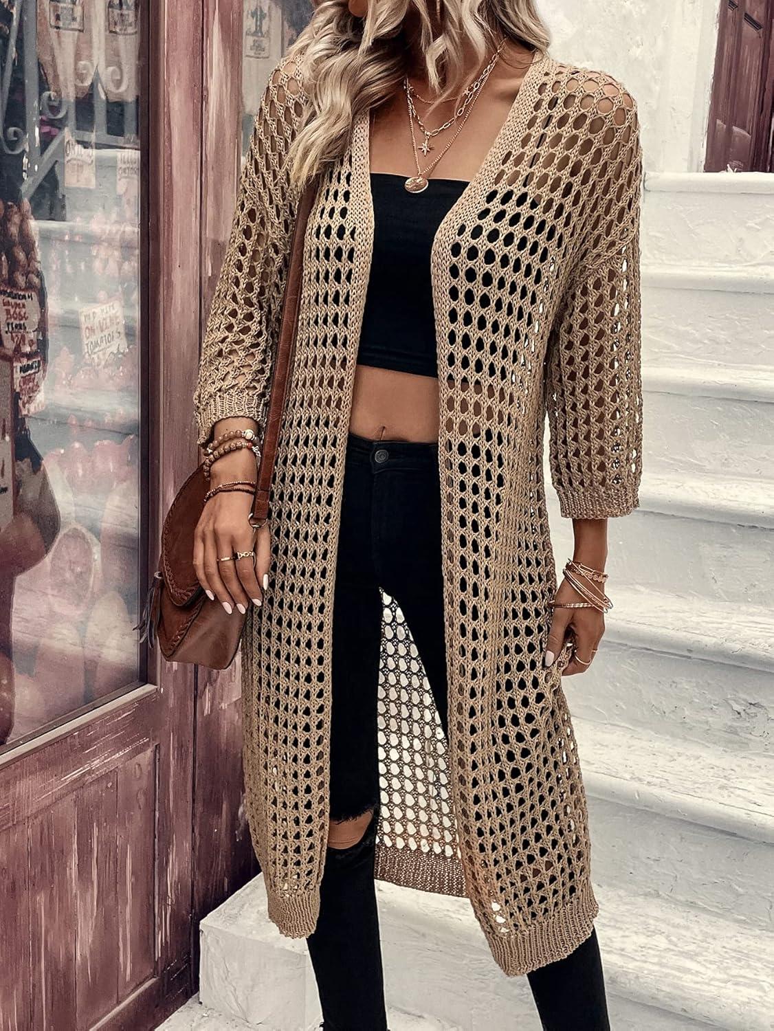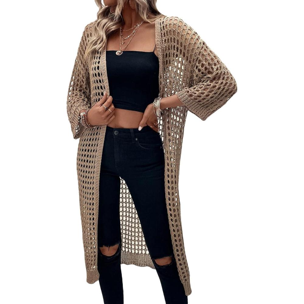 Get up to 60% off on Verdusa Women’s Hollow Out 3/4 Sleeve Open Front Knit Cardigan Long Kimono(Khaki) styles during our winter sale event.