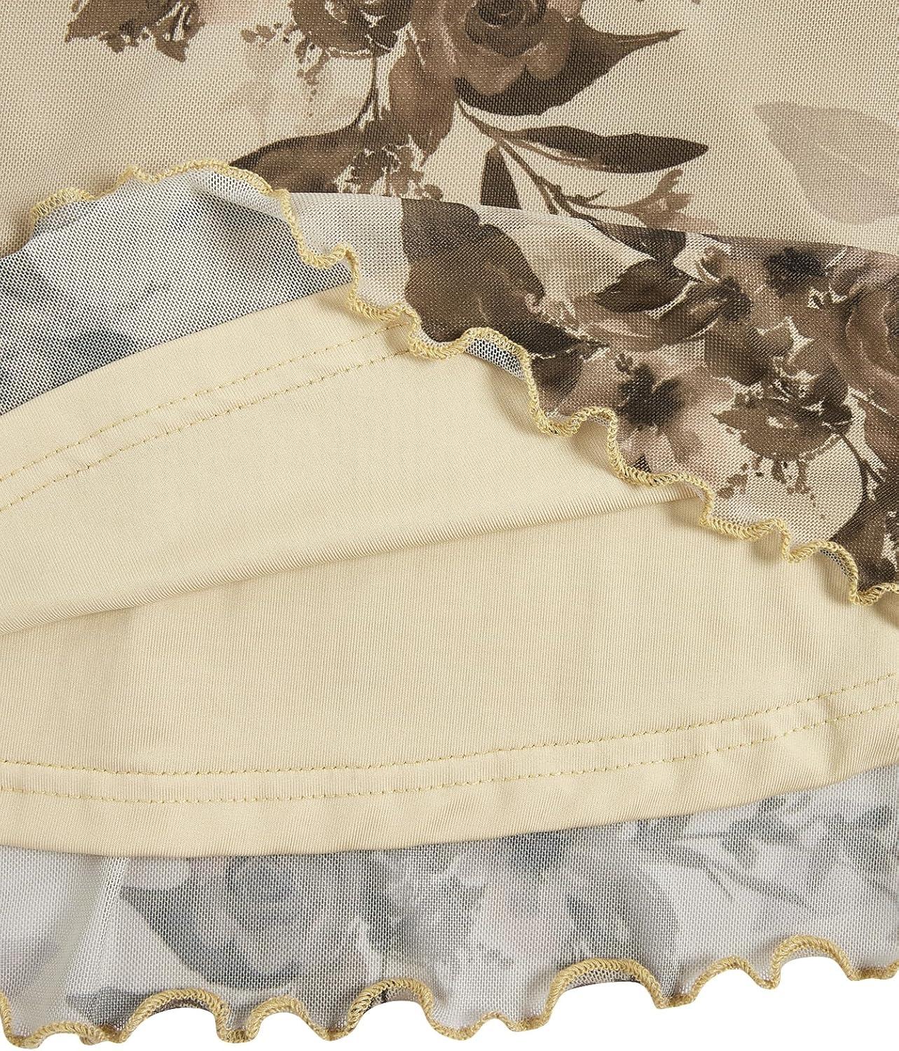 Verdusa Women’s Lettuce Trim Floral Print Mesh Sleeveless A Line Short Cami Dress(Beige)