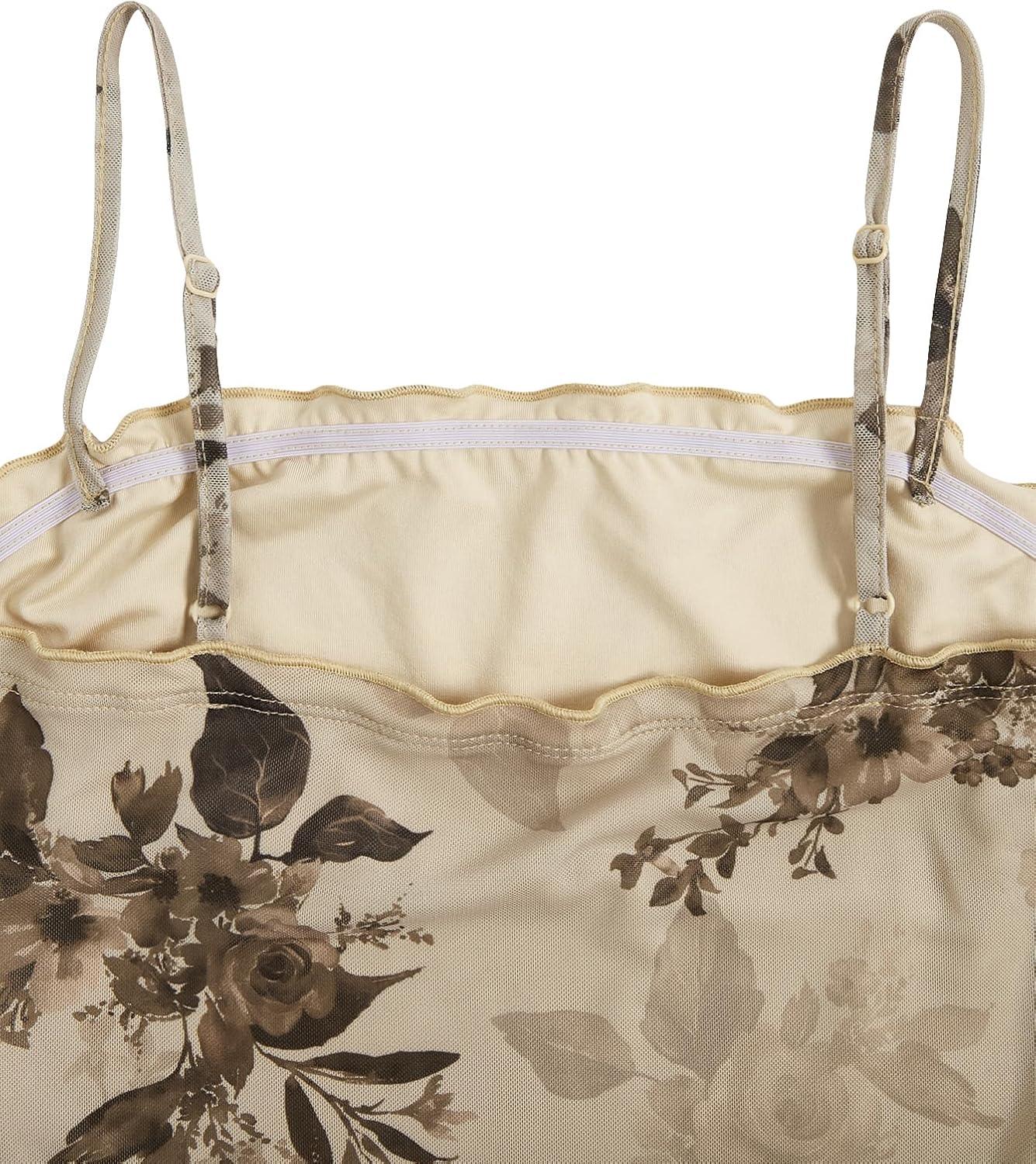 imageVerdusa Womens Lettuce Trim Floral Print Mesh Sleeveless A Line Short Cami DressBeige