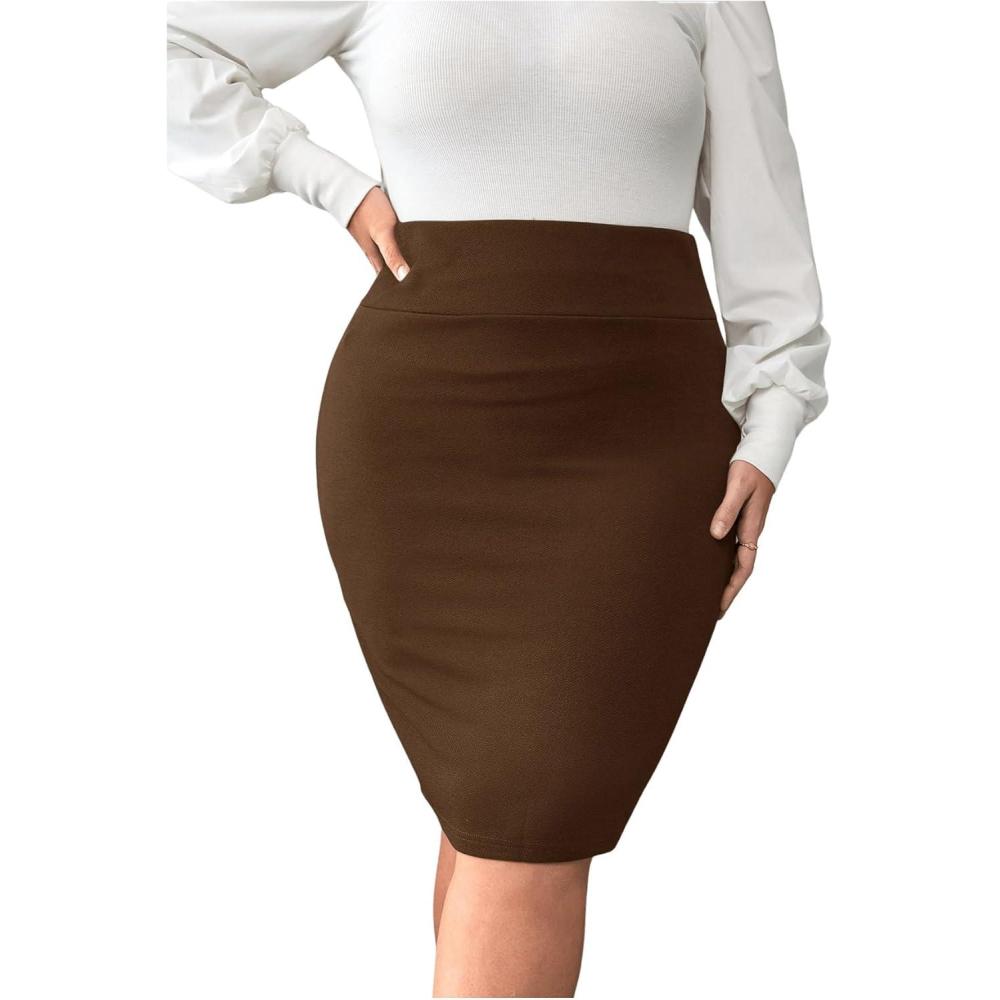 Verdusa Women’s Plus Size Knee Length High Waist Bodycon Business Pencil Skirt(Chocolate Brown)