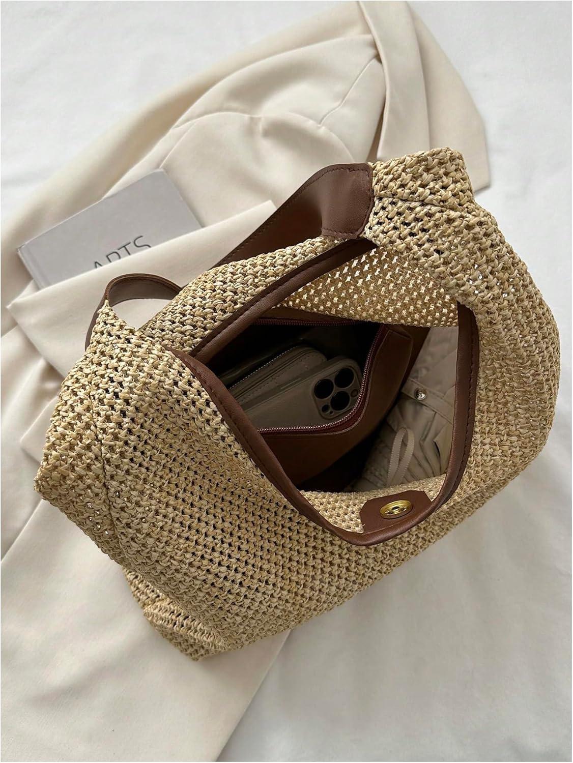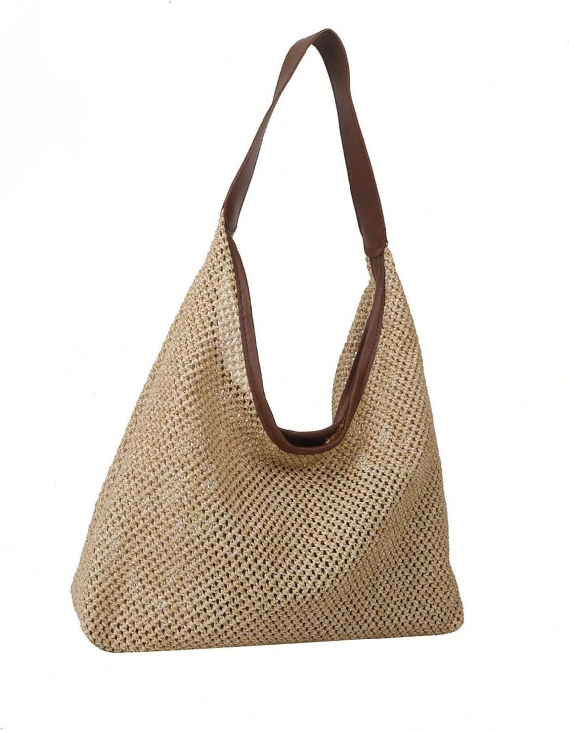 Verdusa Women's Straw Hobo Shoulder Bags Woven Tote Handbag Summer Crochet Purse(Coffee Brown)