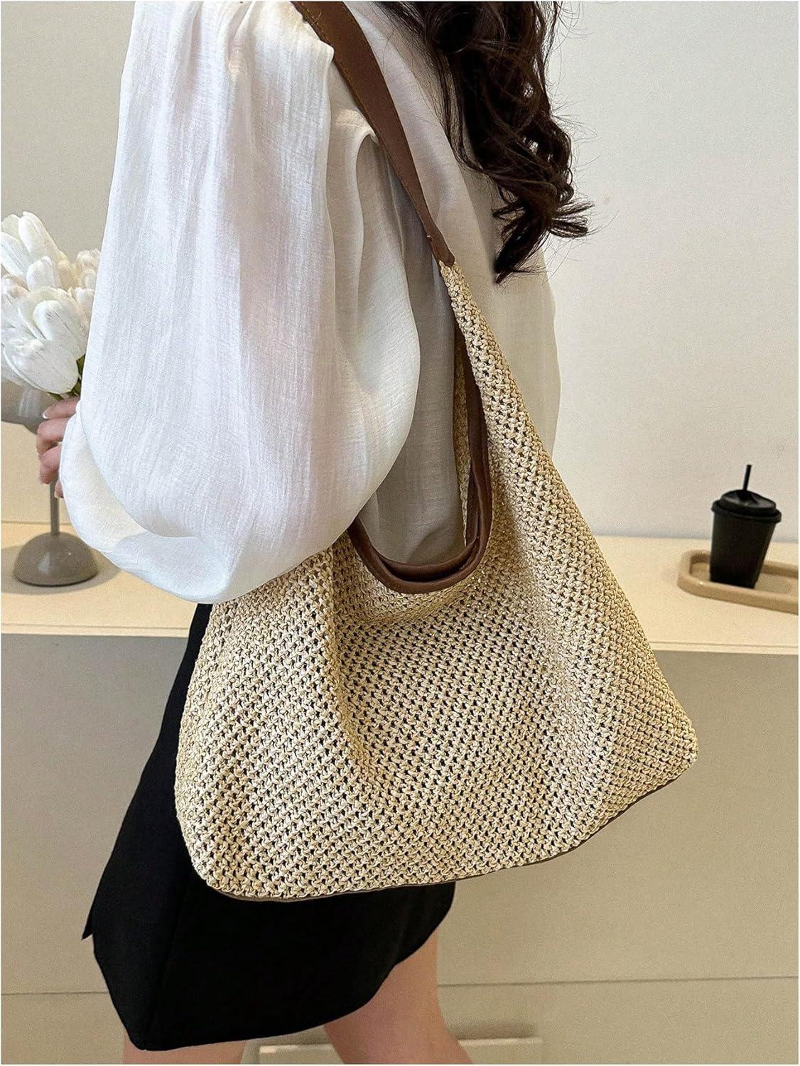 imageVerdusa Womens Straw Hobo Shoulder Bags Woven Tote Handbag Summer Crochet PurseCoffee Brown