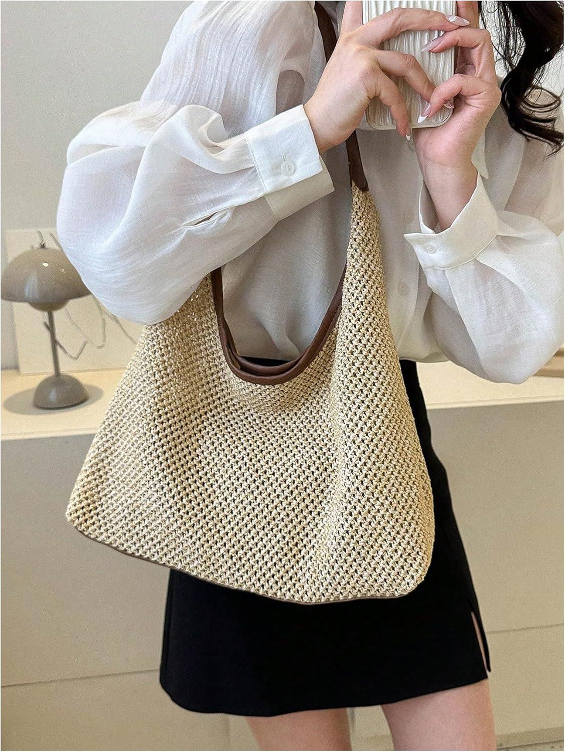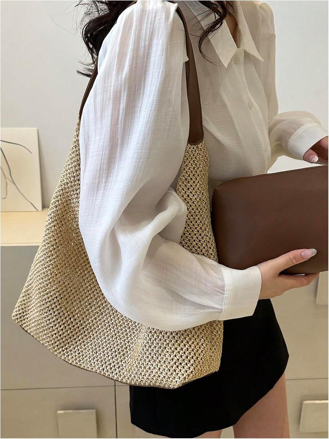 Verdusa Women’s Straw Hobo Shoulder Bags Woven Tote Handbag Summer Crochet Purse(Dark Khaki)
