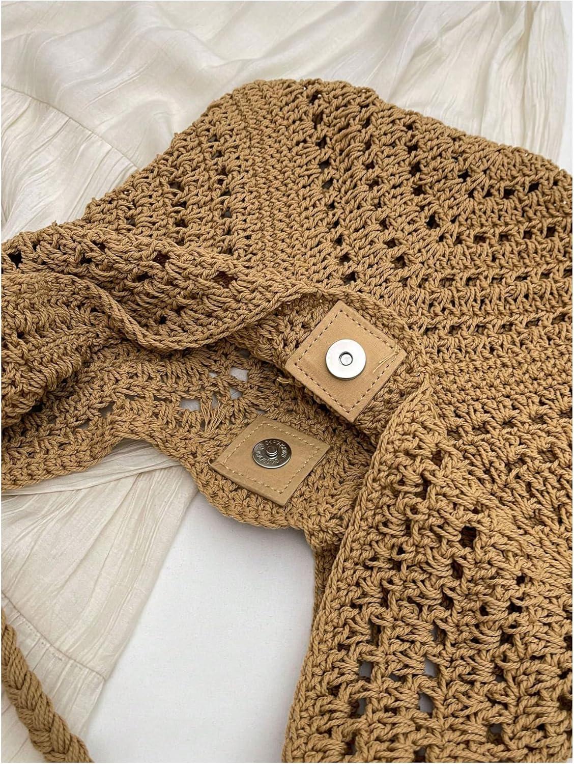 Verdusa Women’s Straw Hobo Shoulder Bags Woven Tote Handbag Summer Crochet Purse(Khaki)