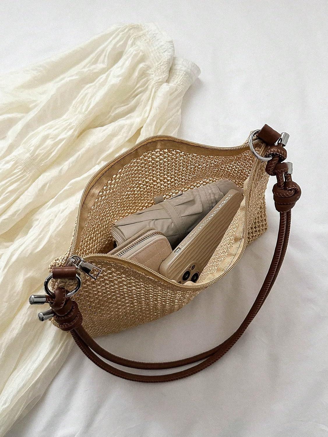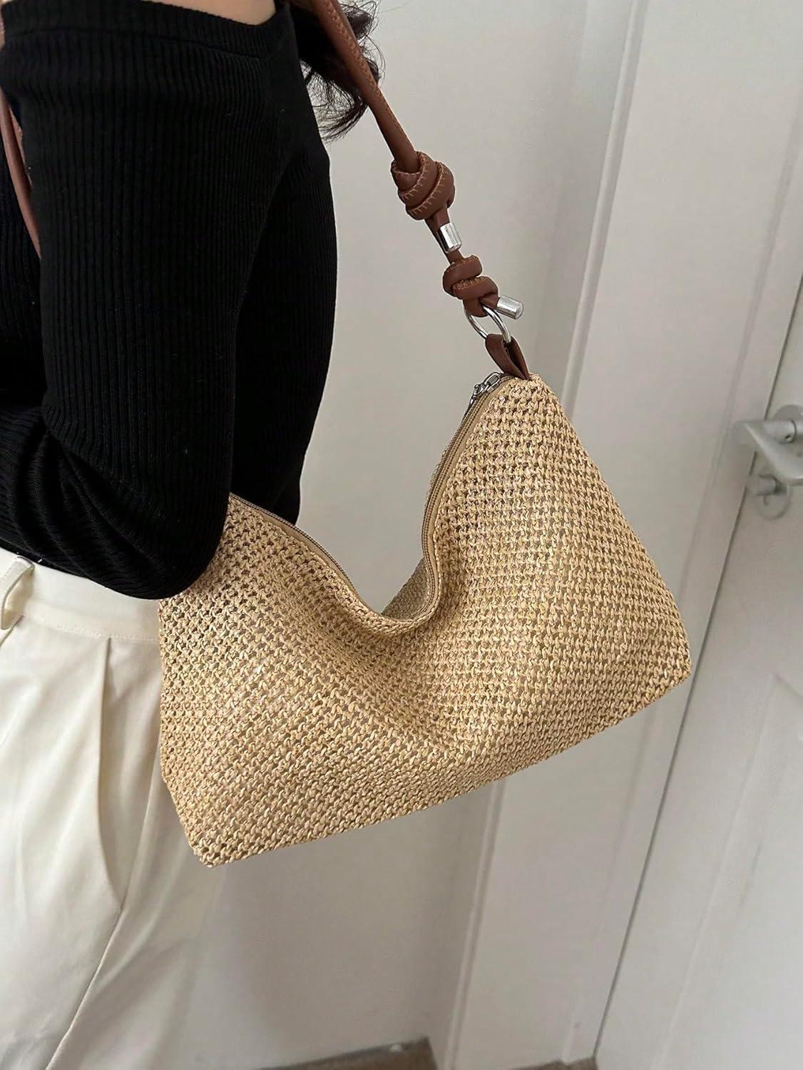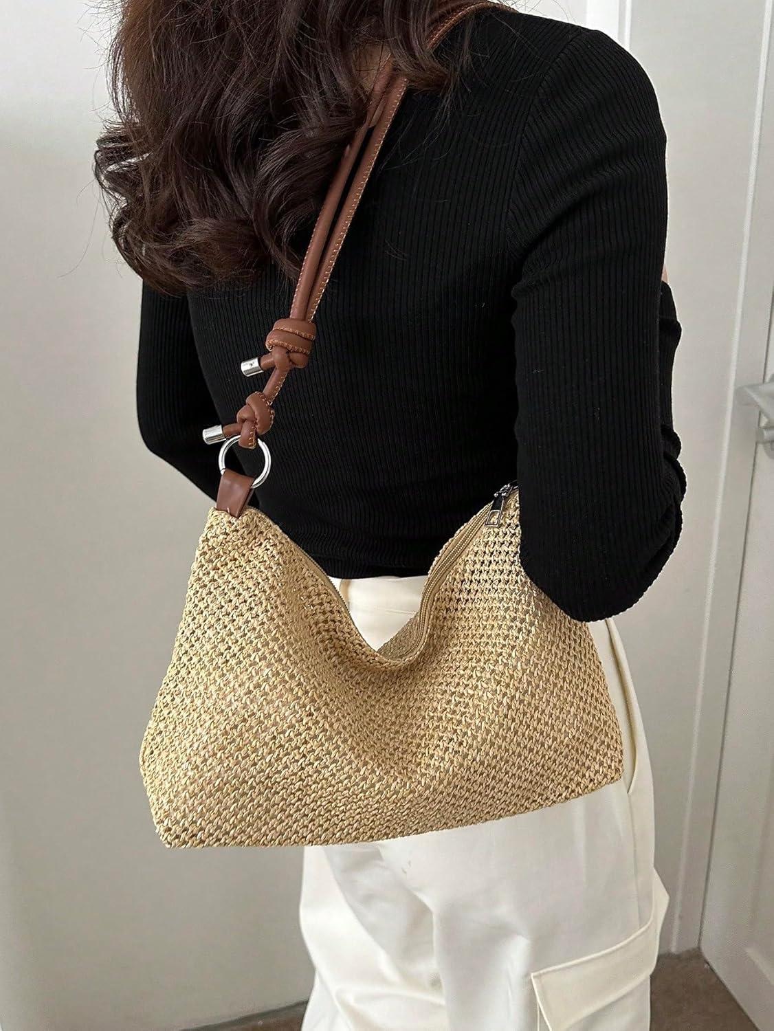 Verdusa Women’s Straw Hobo Shoulder Bags Woven Tote Handbag Summer Crochet Purse(Khaki)