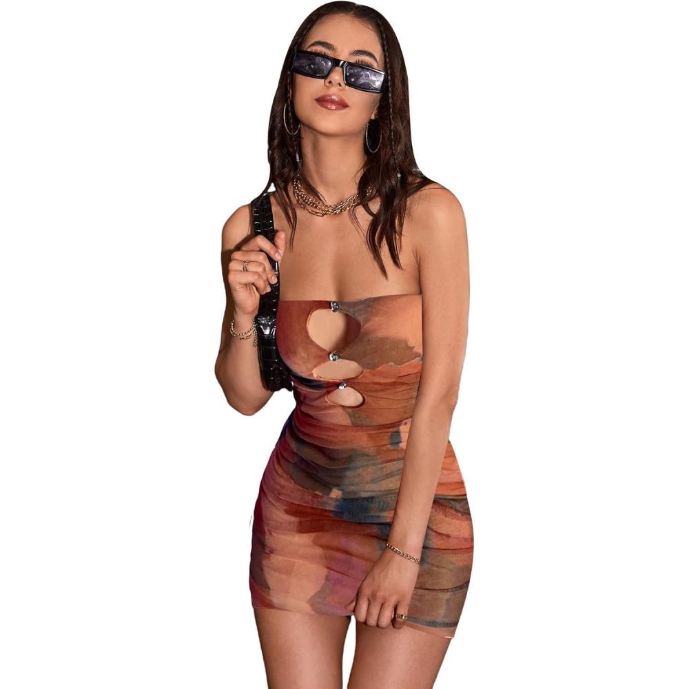 Get your hands on our exclusive Verdusa Women’s Summer Tie Dye Cut Out Strapless Dress Ruched Bodycon Tube Dresses(Brown) collection, now at a discounted price.