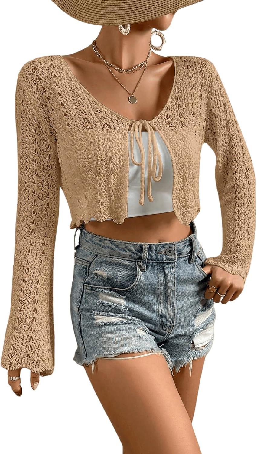 Our holiday sale features the best deals on Verdusa Women’s Tie Front Bell Long Sleeve Scalloped Crop Cardigan Knit Top(Khaki) and accessories. Shop now and save!