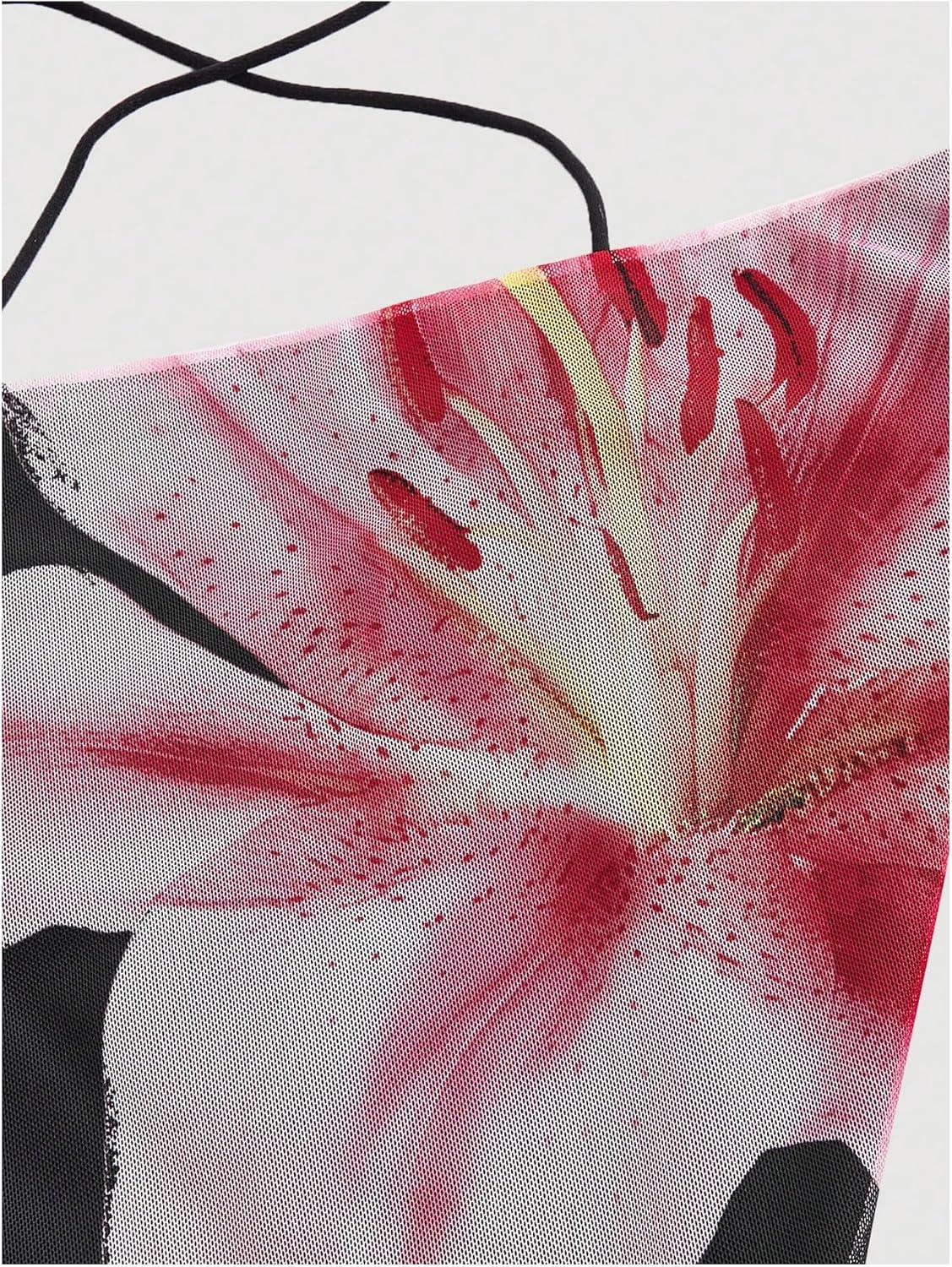 Verdusa Women’s Y2K Tie Dye Floral Backless Summer Top Cowgirl Western Bandana Tops(Black and Pink)